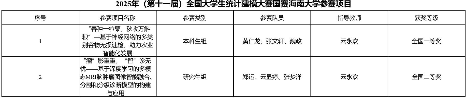 10月25日至26日,由院云永欢老师带队参加的第十一届全国大学生统计建模大赛取得历史性突破。本科生团队获得全国一等奖获奖率0.29%,研究生团队获得全国二等奖获奖率0.57%)。